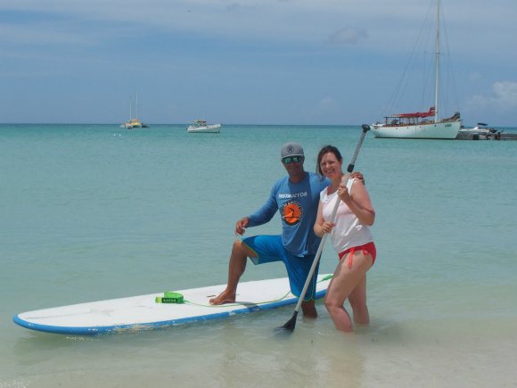 We were there to try our hand at paddleboarding, a first for me, under the expert instruction of Denis from Aruba Surf & Paddleschool. Dennis showed us how to start by kneeling on the board. We were then to slowly stand up while keeping our balance to avoid an undignified dunking.