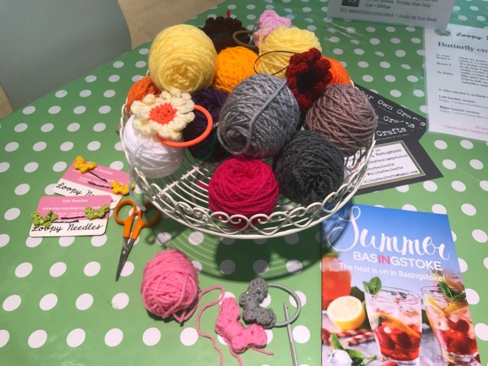 While I was there I tried my hand at making a crochet butterfly. This was one of the different craft workshops that was being run for the Made in Basingstoke festival. The shop may be at different locations, so keep an eye on their Facebook page.