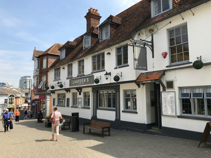The restaurant is in an old Tudor building on what was once the main street through Basingstoke leading to London. If you sit upstairs you can see all the old oak beams.