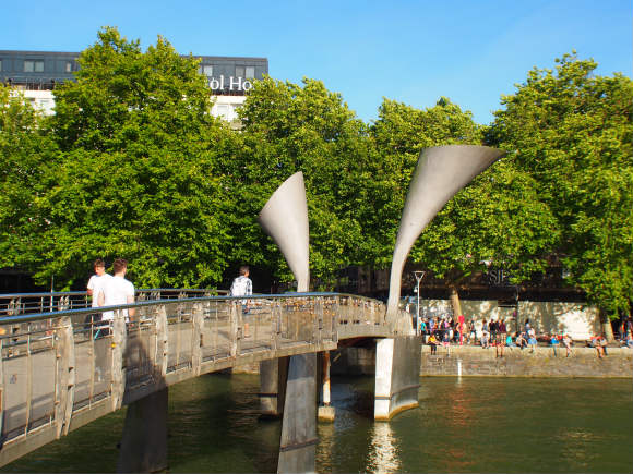 Just before the bridge there’s a covered arcade of bars and restaurants on the Bristol waterfront. The Watershed Arts Centre has an upstairs cafe that overlooks the water. It’s popular with creative entrepreneurs who hold informal meetings across their open laptops.