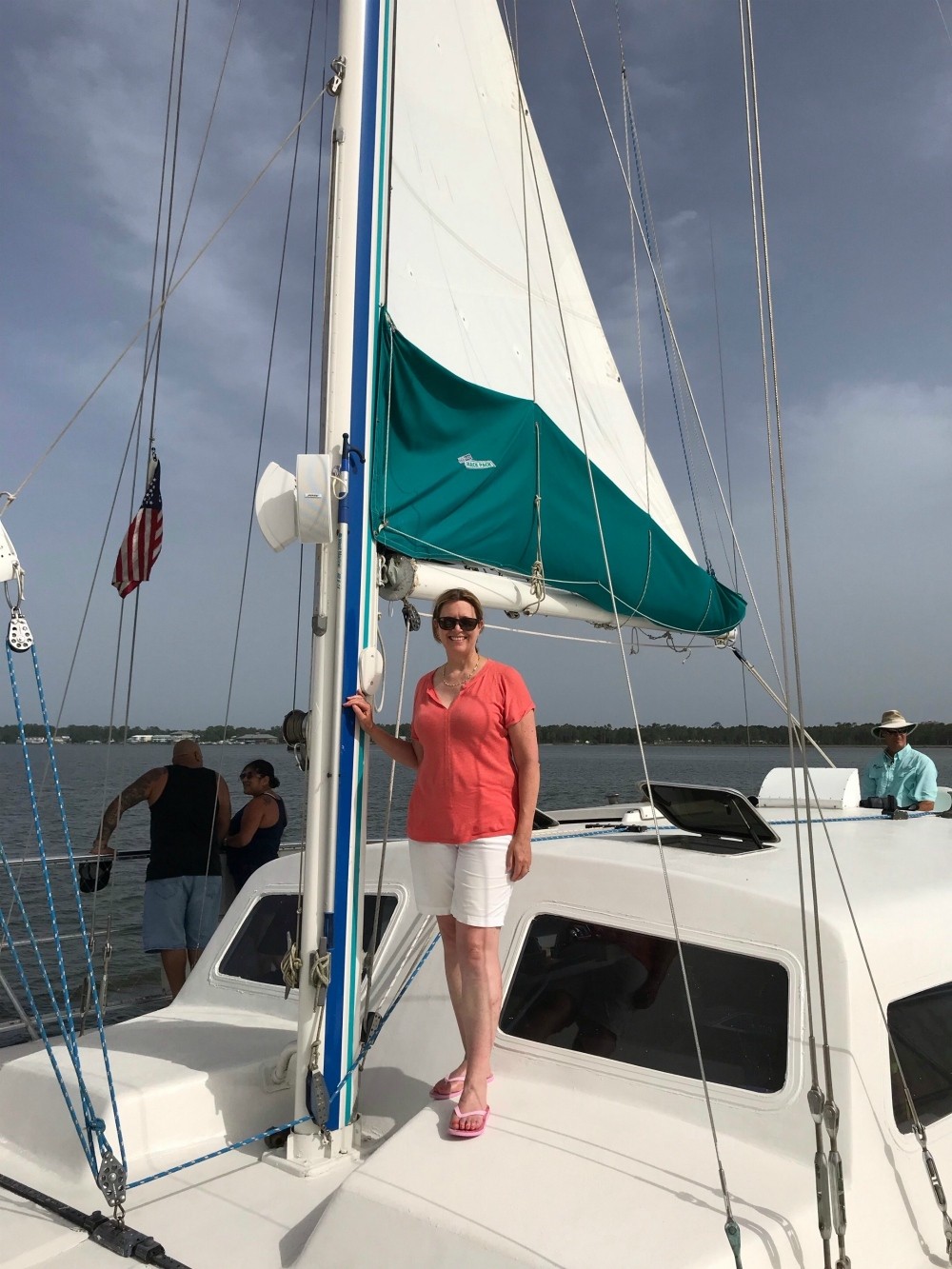 Soon we saw a shrimp boat where the Dolphins loved to hang out, getting a free meal from the discarded catch. It was a fun trip out on the water with the sail up, keeping a sharp look out for dolphins. The crew provided some excellent informatio and also served drinks on board and helped out with photos.