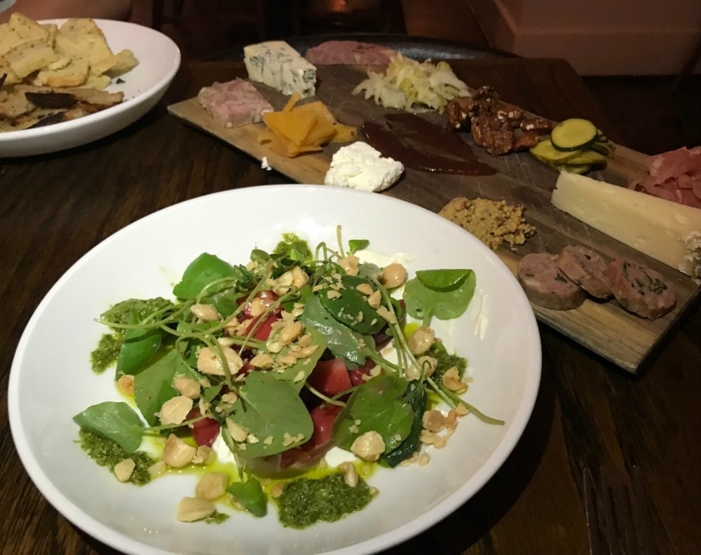 The lunchtime menu includes lots of light dishes like soup, sandwiches and salads. I tried the fried oysters on flatbread with arugula salad, bacon and mozzarella – delicious!