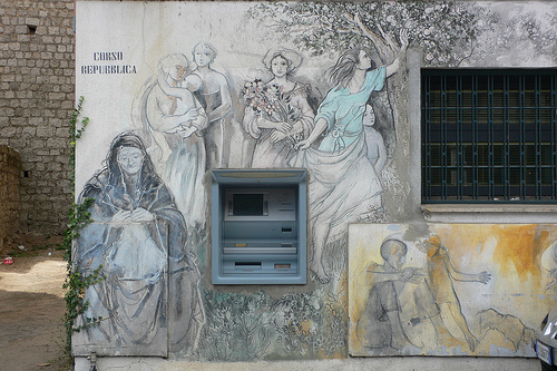 Where else would you have such an artistic setting for a cash machine?