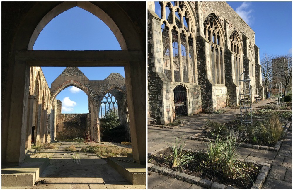 Cross the road at the end of Corn Street and walk through to Castle Park, a favourite of local office workers to bring their lunch and sit out on a sunny day. In winter when we visited it’s still beautiful but more for a brisk walk by the river to get a feel for something of Bristol’s history. The park’s landmark is the shell of St Peter’s church which was all but destroyed in the Second World War but was left a a monument to the civilians that died in Bristol blitz.