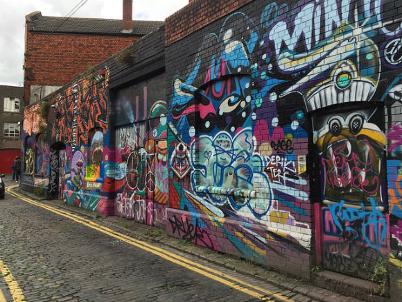 The road leading from the city centre is seemingly one long street-art gallery. Businesses along here regularly commission work from the top street artists.