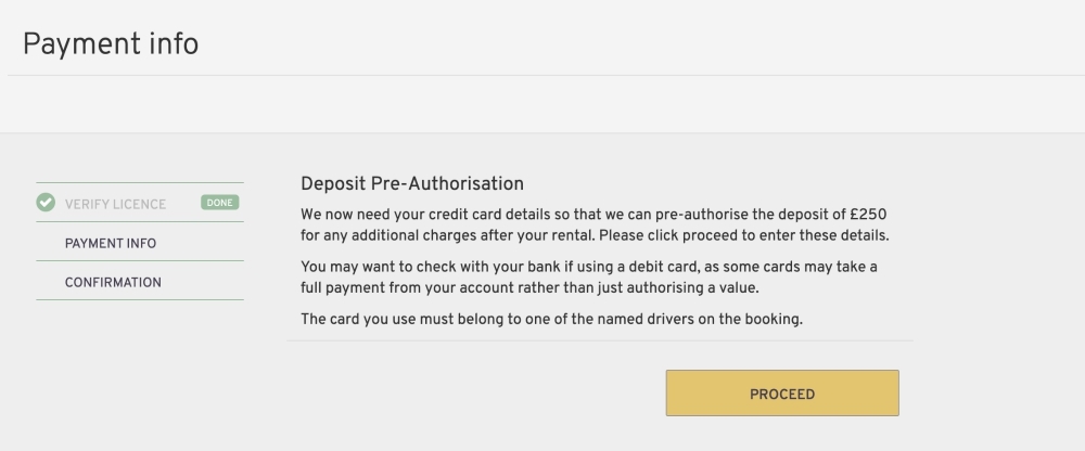 I provided my credit card details in case of any unexpected charges – just as I would normally do for other car rentals.
