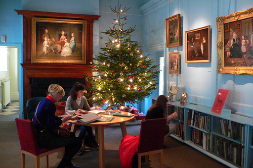 When I visited in December, all the rooms were decorated for Christmas in appropriate style, with evergreen branches in the earlier rooms, becoming more decorative and festive as we move nearer to the present day. Moving through the centuries from the 1630s, we see furniture and house decoration becoming more elaborate and and cozy, introducing new items from Britain’s trading and colonial past, until we get to the 1960s onwards when clean and simple lines become fashionable again.