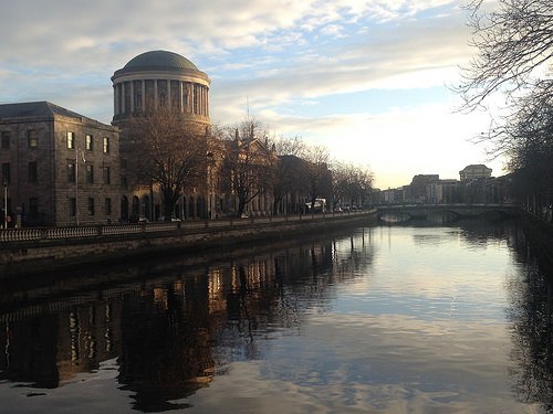 On Saturday morning we enjoyed our Irish cooked breakfast in the hostel. Then we were off for that brisk walk along the Liffey, which was looking particularly atmospheric in the chill winter air. The sun lit up the front of the Four Courts and created reflections on the water.