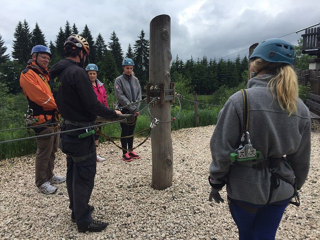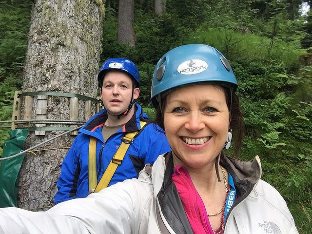 Normally my happy place would be an Alpine hiking trail, preferably with blue skies and brilliant sunshine. Perhaps even a mountain hut to order a cold beer and admire the view! I may have walked the Tour de Mont Blanc and tried climbing a Via Ferrata, but the high wire course was definitely stretching my climbing abilities.