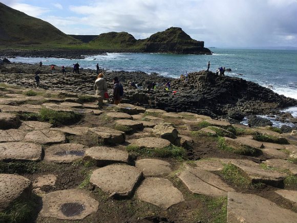 So here’s the star of Northern Ireland’s Causeway Coast; the Giant’s Causeway. Since the 1830s tourists have been coming here to see this wonder of nature. The hexagonal basalt columns were formed 66 million years ago, when a lava flow cooled and cracked. Over time, the sea and weather eroded the columns into the iconic rock formations you see today.