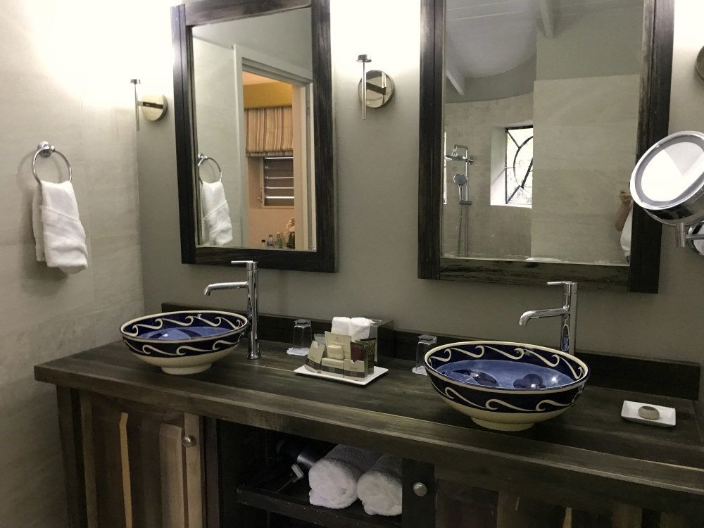So what about the rooms? The style at East Winds is classic Caribbean deluxe – with white walls and dark wood furniture, in my room made of a woven bamboo. The fabrics were natural with crisp cotton sheets and a white woven bedcover and in the case of my bedroom – all the rooms are slightly different.