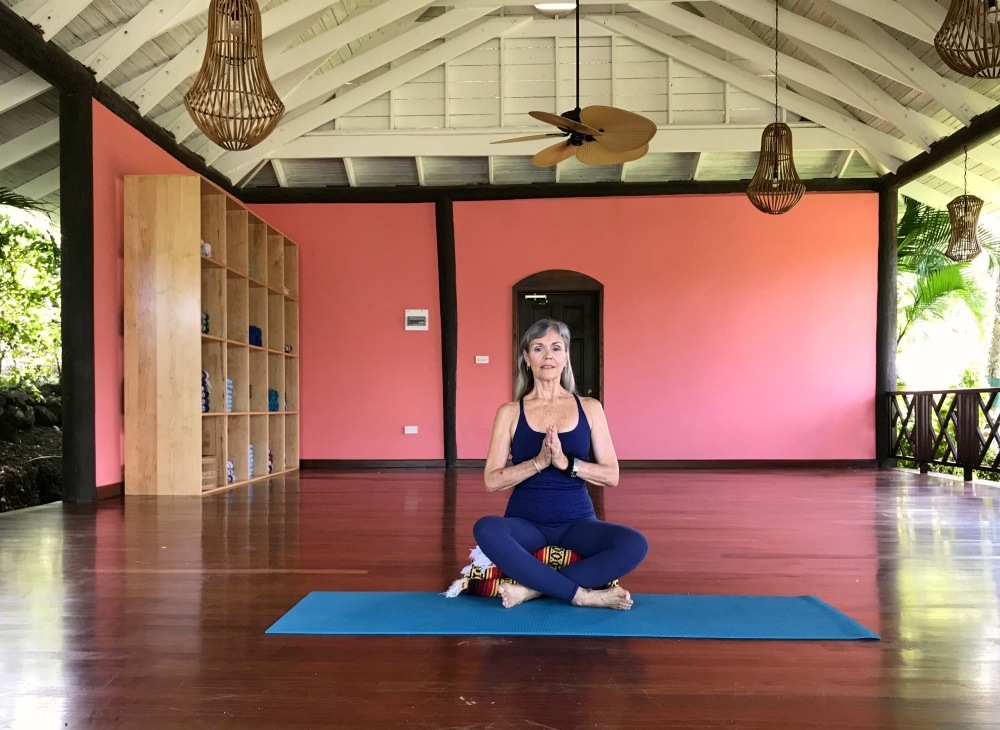 In the early morning, the open sided yoga pavilion with its dark wood floors and whitewashed rafters created a tranquil atmosphere. I could hear pigeons cooing and the sound of the waves washing on the beach.