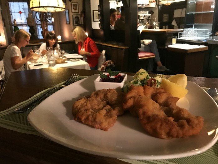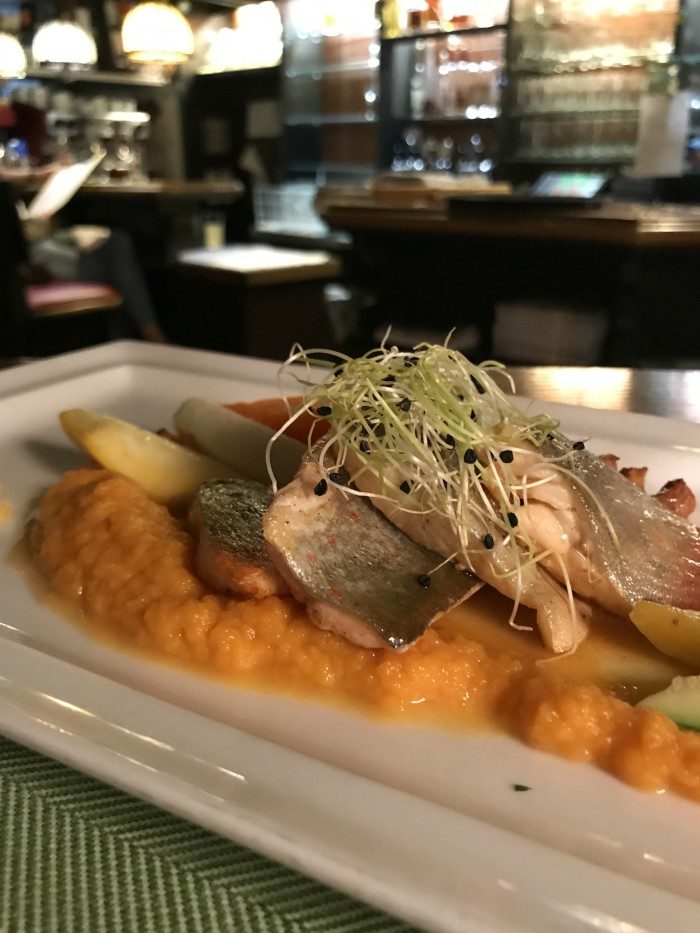 I tried the pan-fried char on a bed of sweet potato and vegetables, while my husband ordered a schnitzel with cranberries and parsley potatoes, both delicious. They serve classic dishes using all the local ingredients.