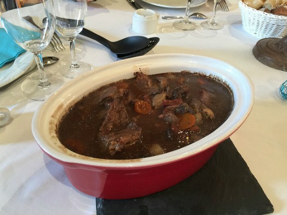 The final tasting of Burgundy red wine was left to try at our lunch in one of the converted chateau outbuildings where we dined on the classic local specialty of Burgundy, a hearty boeuf bourguignon made with the chateau’s own red wine.