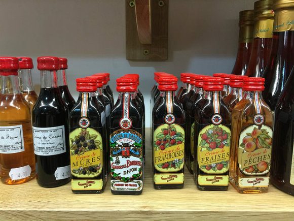 You’ll see many varieties of Crème de Cassis on sale in Burgundy as well as other fruit flavored syrups and liqueurs. The Crème de Cassis is made from blackcurrants soaked in alcohol. It’s often drunk as an aperitif; a Kir mixed with sparkling white wine or Kir Royale with champagne.