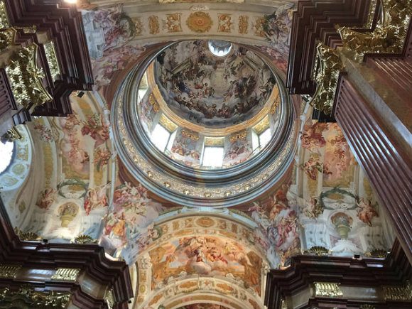 The final part of the visit took us through the monastery church. It was decorated in similarly ornate baroque style, with more gilding and ceiling frescos to dazzle us.