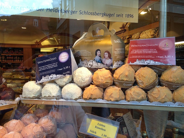 At Café Gundel in the old town, you can order a unique cake that was created to commemorate the romantic story of Frederich V and Elizabeth Stuart. Created in 1820 when visitors started to visit Heidelberg, the Master Baker Gundel created the Kurfürstenkugel. This sponge ball is filled with nougat cream and covered with marzipan and chocolate.