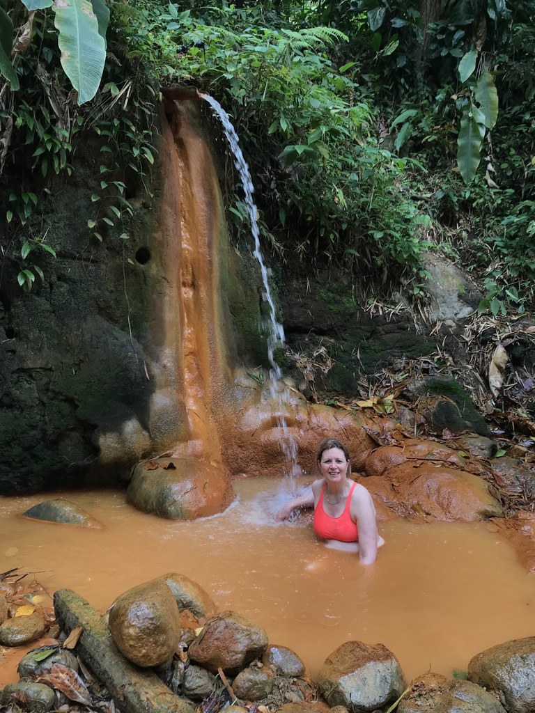 At this particular spot, we found a group of locals who had hiked to the waterfall and were setting up a pot to make a picnic lunch over an open fire. It was fun to wallow for a while in the sulphur pools, before we headed back along the river trail back to the car.