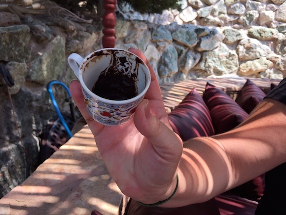 After lunch we moved into the shady seating area where we had started with glasses of tea. This time we tried some sweet, black Turkish coffee which is supposed to help your digestion.