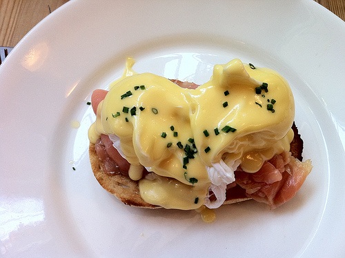 I'm so wondering what that breakfast dish is? It looks amazing but greasy:) Bread with ham and some kind of sauce?