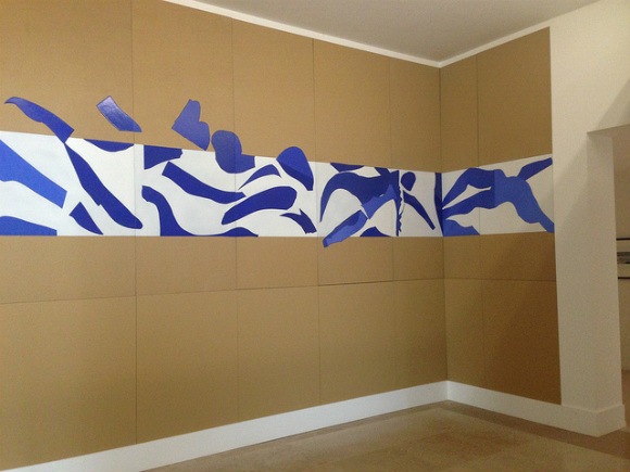 At the back of the villa is a modern wing with an open ground floor space where we admired the oriental costumes that Matisse designed for the Diaghilev Ballet Russe performance of Le Chant du Rossignol in 1925. In the spirit of more blue and white paper cut-outs, I also enjoyed the room size panels of La Piscine with a white band overlaid with blue swimming motifs, one of the few things I dared to covertly photograph.