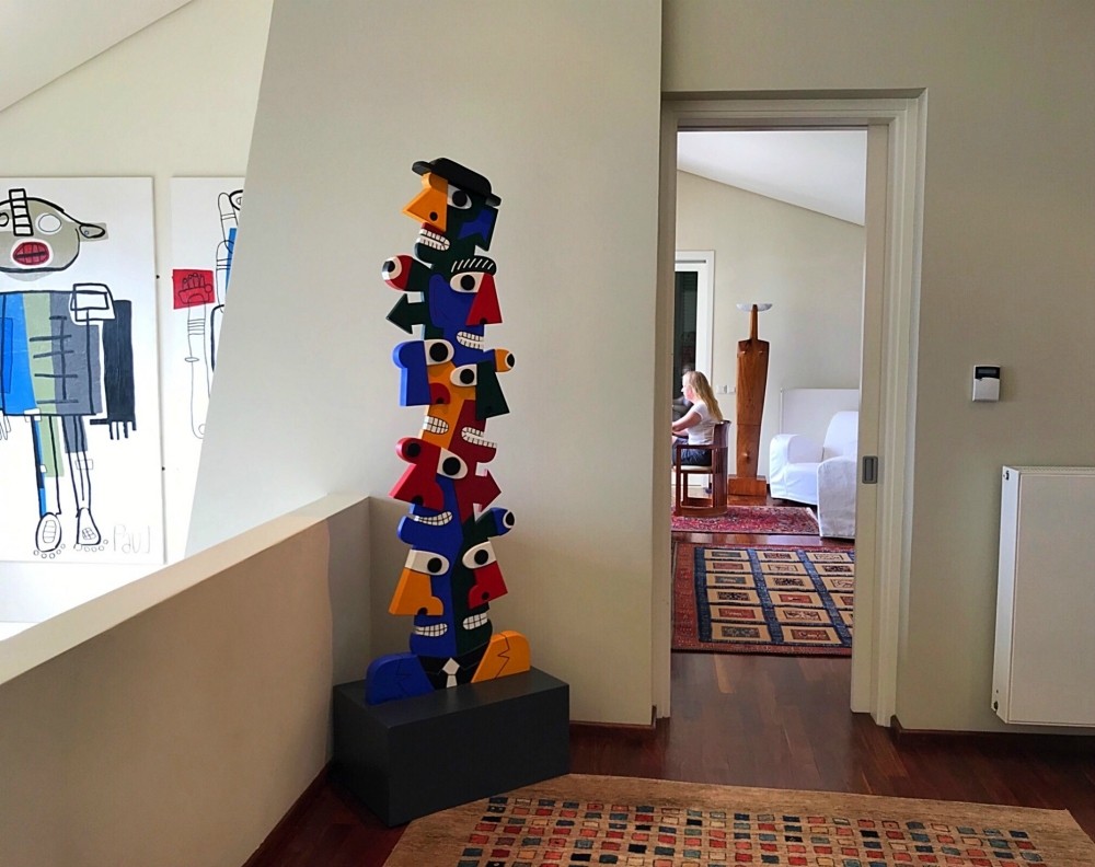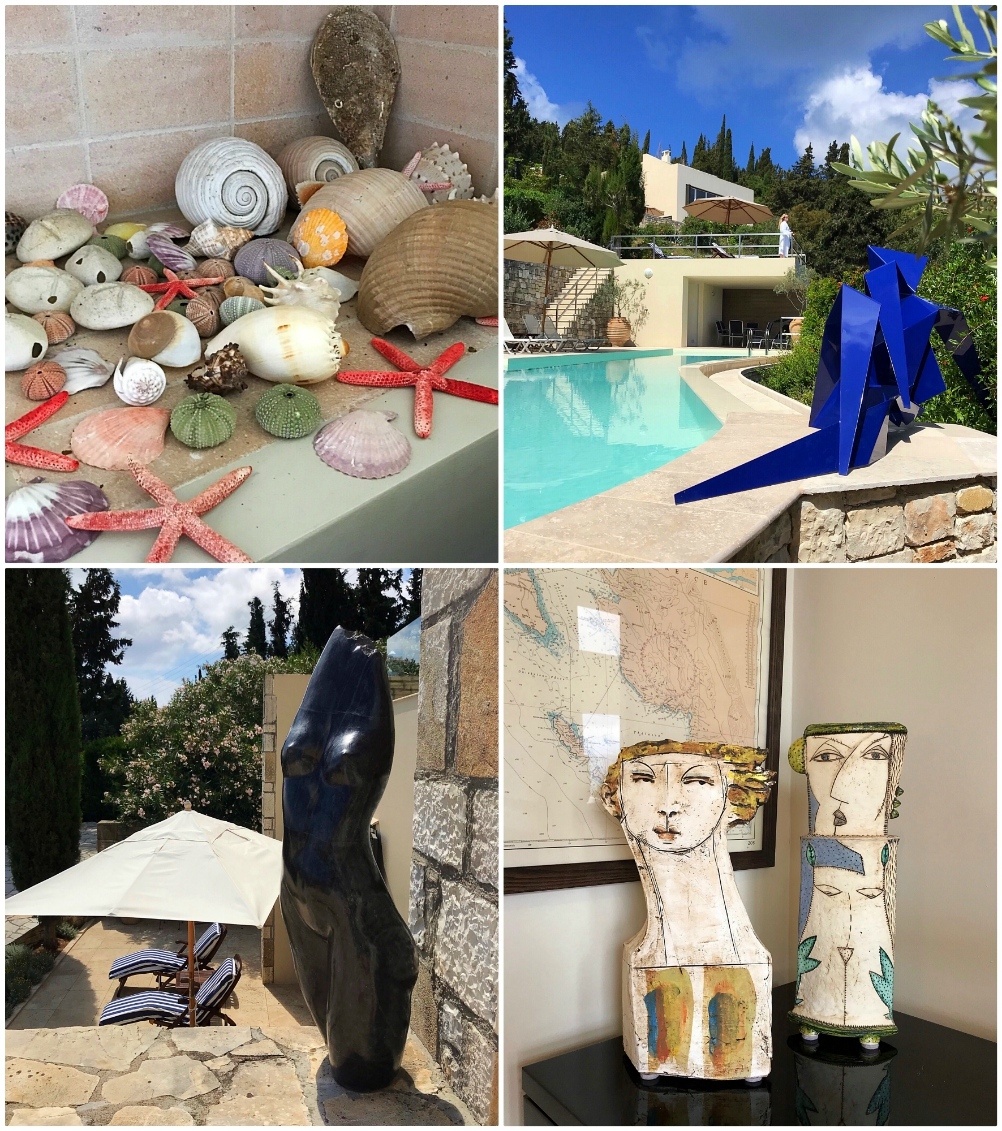 Another aspect of Villa Glaros that I loved was the artwork scattered around the villa and the small personal details like the shell collection in the fireplace. Each sculpture or painting had been carefully chosen to suit the space, the elongated black marble torso, the primary colours in the column of faces outside the study and the quirky ceramic figurines in the bathrooms.
