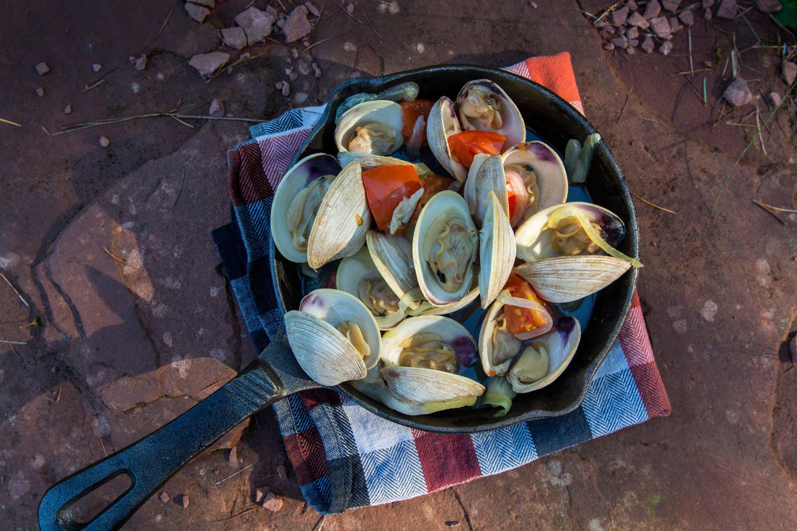 A traditional way to try the Prince Edward Island clams is to cook them on the beach where the clams are dug, Then, they’re washed in seawater and steamed in seaweed over an open fire in a clam bake.