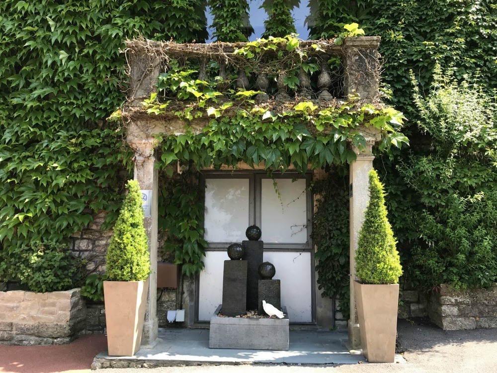 As we’d arrived a bit early for check in, I left Guy reading the papers while I took a walk around the beautiful gardens in front Cadbury House Hotel. The hotel is set halfway up Cadbury Hill and the garden slopes gently downwards, with terraced lawns and a pretty ornamental lake where a fountain was spouting into the air. There were lots of benches to sit around the lake, a terrace with a giant outdoor chess set and plenty of space for ball games.