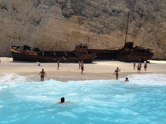 If you’ve seen any photos of Zakynthos, chances you’ll have seen the one of Shipwreck cove or Navagio, taken from the cliffs above. This crescent of sand hosts a half-buried, rusty wreck and high cliffs on either side. It is one of the most photographed beaches in Greece.