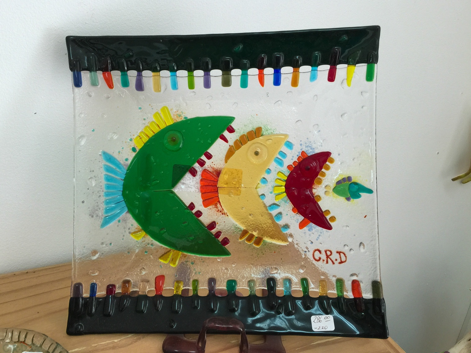 Look out for the work of Calvin Delpleche of Caribbean Glass who sells through the galleries mentioned and sometimes has a stand in the Amina Craft Market in Port Zante (smaller glass items $15-40).
