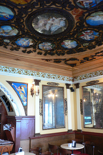 My starter is a great little cafe called Caffe Tettamanzi on the pedestrianised Corso Garibaldi at No 71. From the pavement it’s the normal layout with outdoor tables where you can sit and watch the world go by. But when you venture in, it’s got a lovely traditional mirrored interior and painted ceiling with cherubs flitting about.