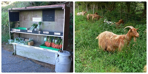 We were able to have a chat to the owners, Mandy and Peter Girard and stroked the inquisitive goats whose milk is used to make the cheese – now you can’t do that at Waitrose! Everywhere there are Hedge Veg stalls with fresh eggs, newly dug potatoes, carrots, fennel, beans or other produce that you can cook for your supper that evening which makes a nice change from the supermarket. In the spirit of adventure, you never quite know what you’re going to find when you stop.