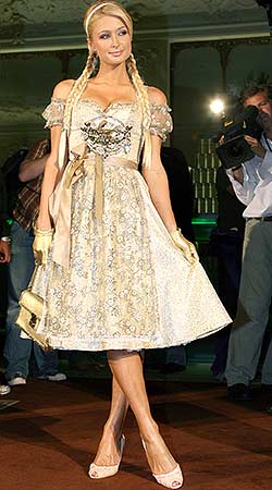 - The Oktoberfest, the famous beer and folk festival held in Munich (in October since you ask) is a favourite place to wear your dirndl for tourists as well as locals – even Paris Hilton wore one when she was at the Oktoberfest.