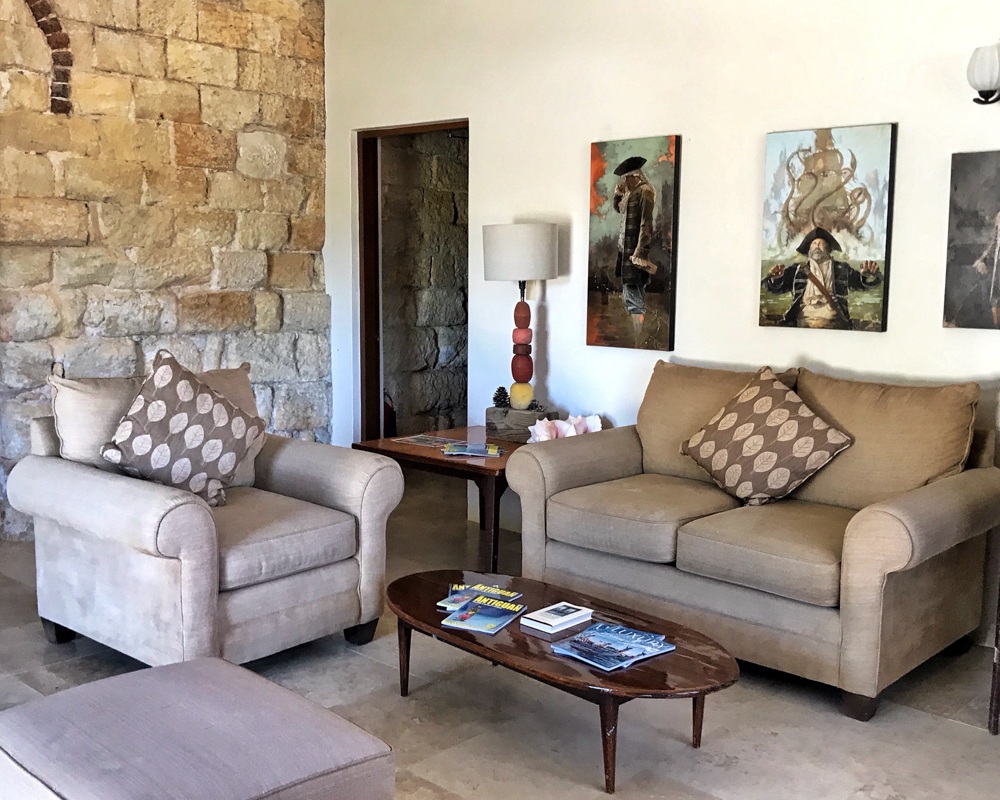Most plantation houses had a second floor built of wood, but The Great House is unusual in having an upper floor built of stone. It uses the honey coloured Cotswold stone that was brought to Antigua as ballast in the ships.