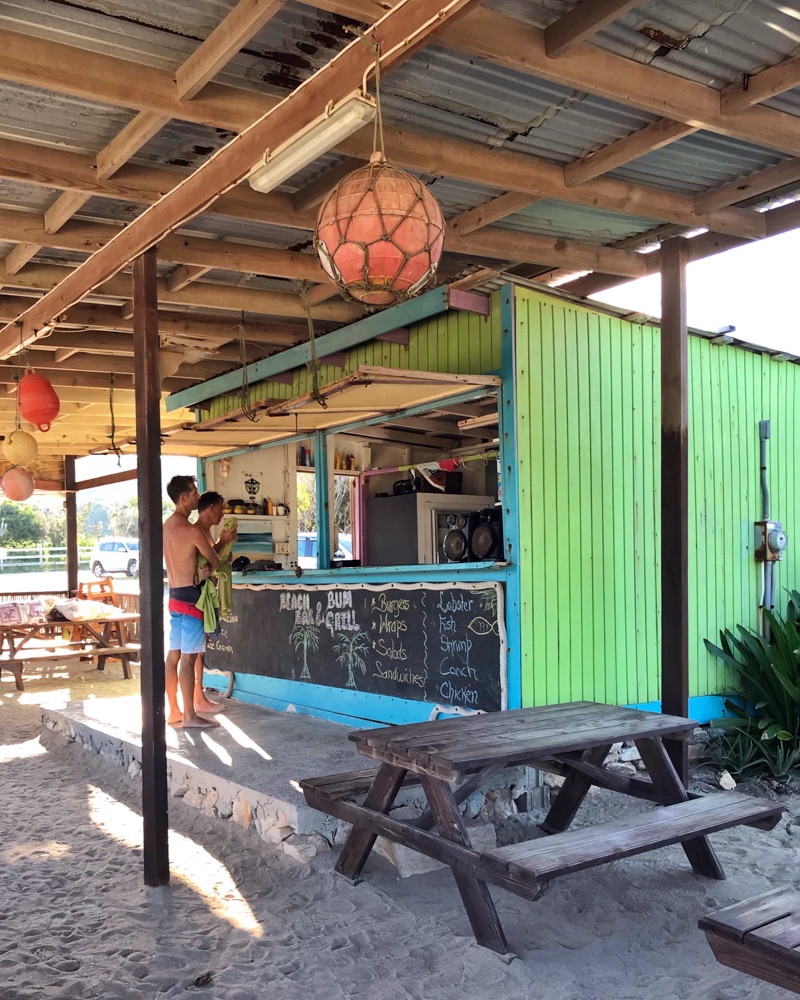 In the middle of the beach, near the parking area is a lovely beach bar. The Beach Bum Bar and Grill, serves drinks and food through the day and into the evening.