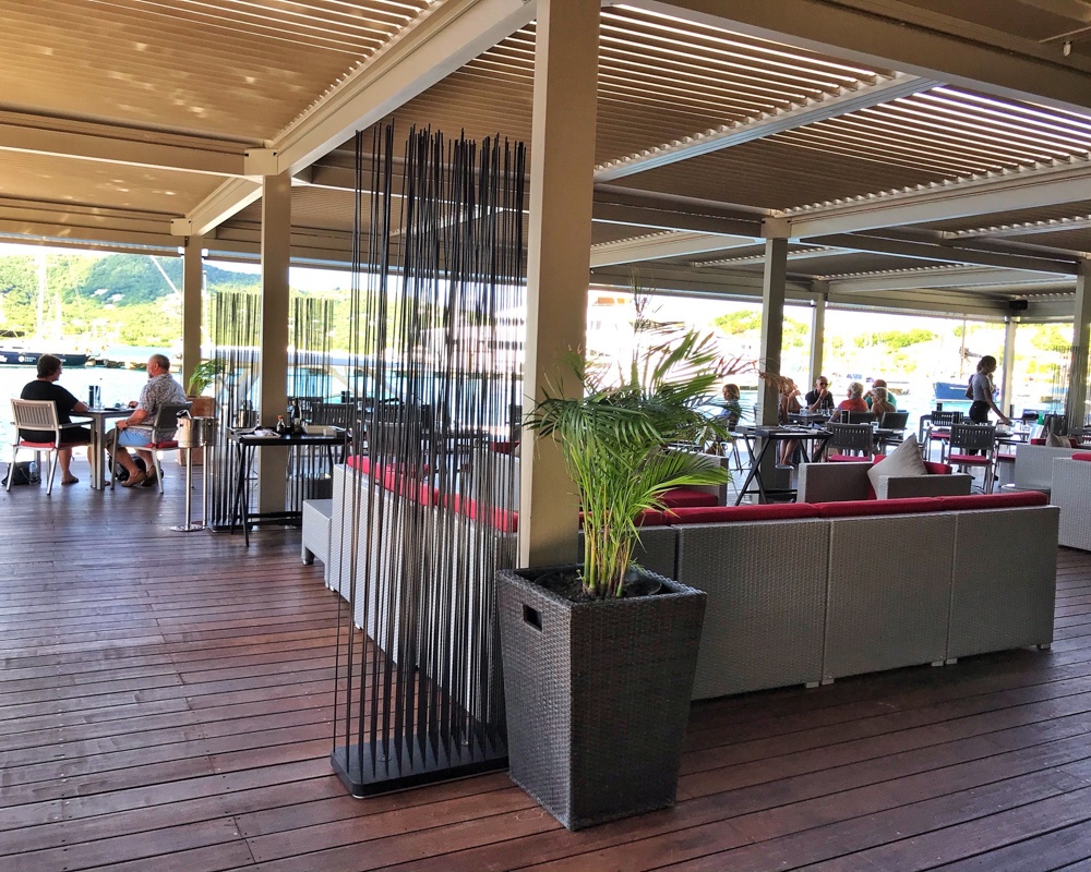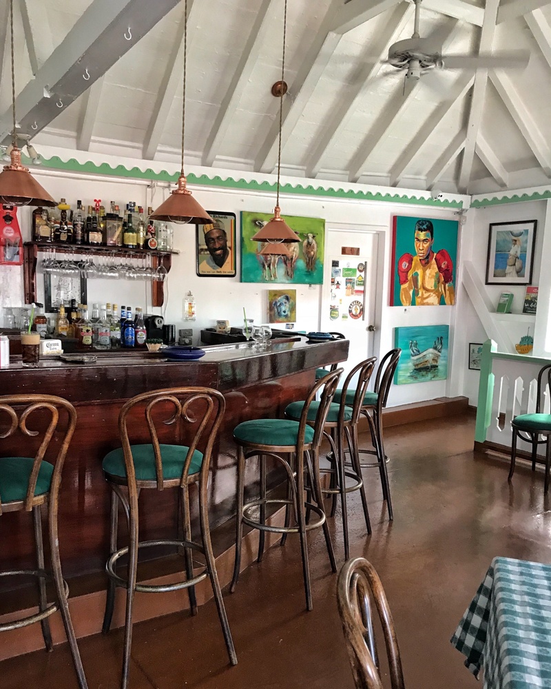 On the ground floor of the Antigua Yacht Club building is Bar-B’s cafe which has a nice open verandah overlooking the marina. It’s a good spot for drinks and casual meals throughout the day. They have a useful internet corner where you can charge up your electronics and do a bit of work.