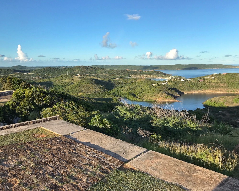 The trail ran upwards from the back of Pigeon Beach through low trees and scrub to a gun battery. I enjoyed a great view over the mouth of Falmouth Harbour from the former military lookout post.