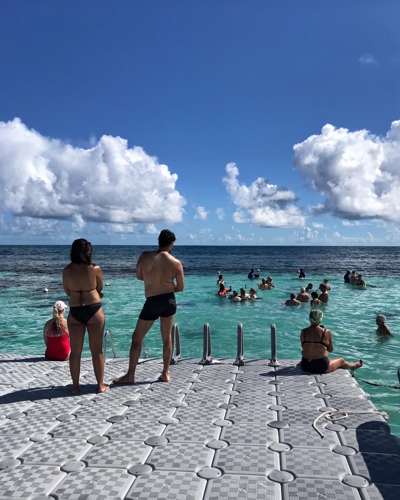 The speedboats that each take around 15 people moor up at a floating platform. You can enter the water and then don a mask and snorkel that’s provided as part of the tour.