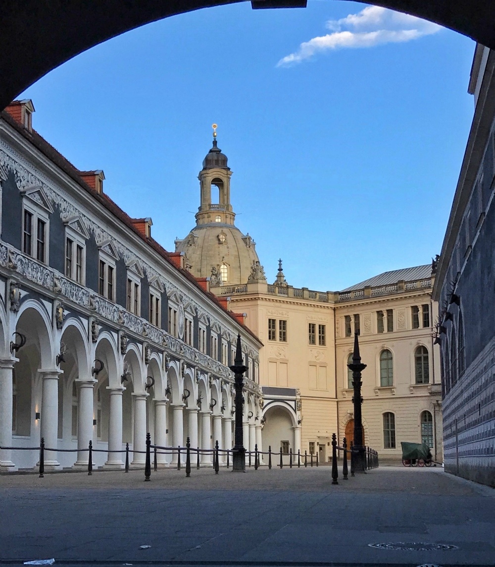 There were crowds of people waiting to take their photograph of the view from the terrace down the narrow street towards the Frauenkirche. We concluded that it must be one of the most popular instagram spots of Dresden, so we duly stopped to take the photo too.