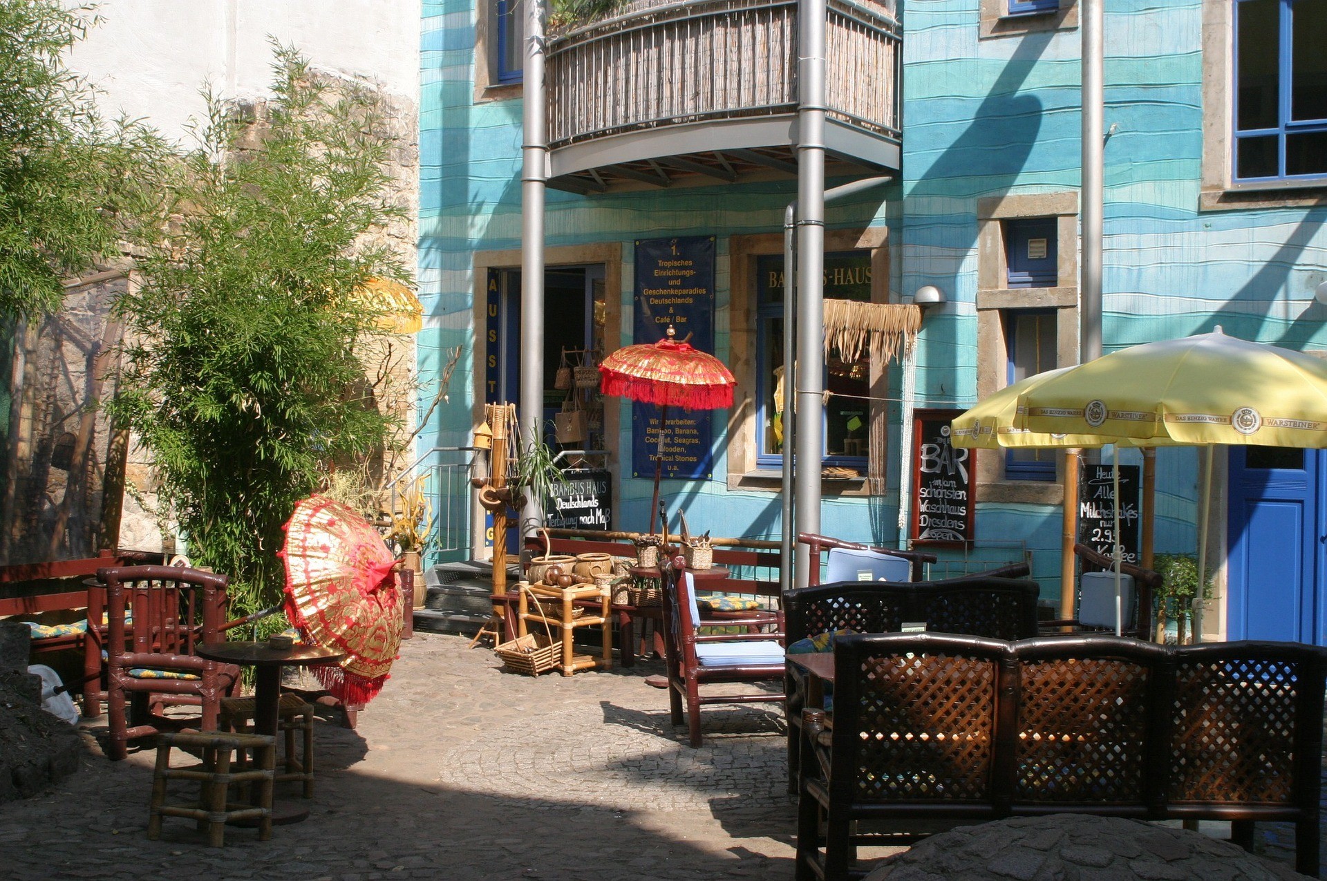 This is probably the cheaper side of the river for hotels, bars and restaurants. Off the broad boulevard of Konigstrasse with its smart shops are many more indie boutiques and interesting shops.
