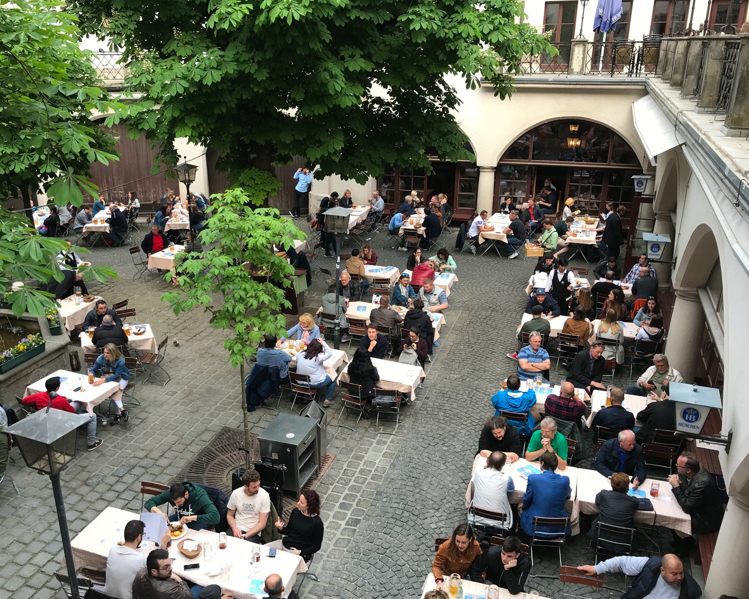 The Hofbrauhaus is huge, with numerous different rooms, the service is swift and efficient. When the weather’s warm there’s also a large courtyard biergarten which has a pleasant atmosphere under the chestnut trees as well as some rooms on the first floor which are quieter.