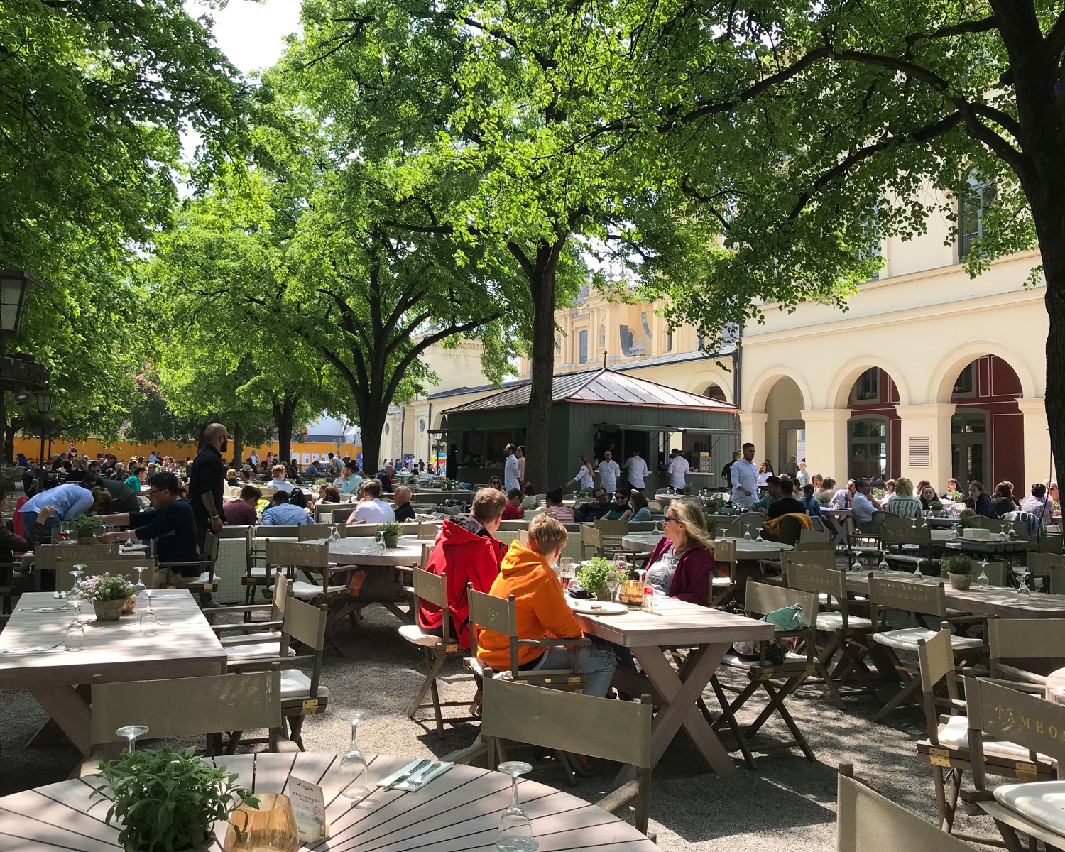 Other places that have pleasant biergarten in the central area of Munich are the Viktualienmarkt food market and the Park Cafe at the Alter Botanischer Garten. This is a good choice if you like the beer but want a more international style of food.