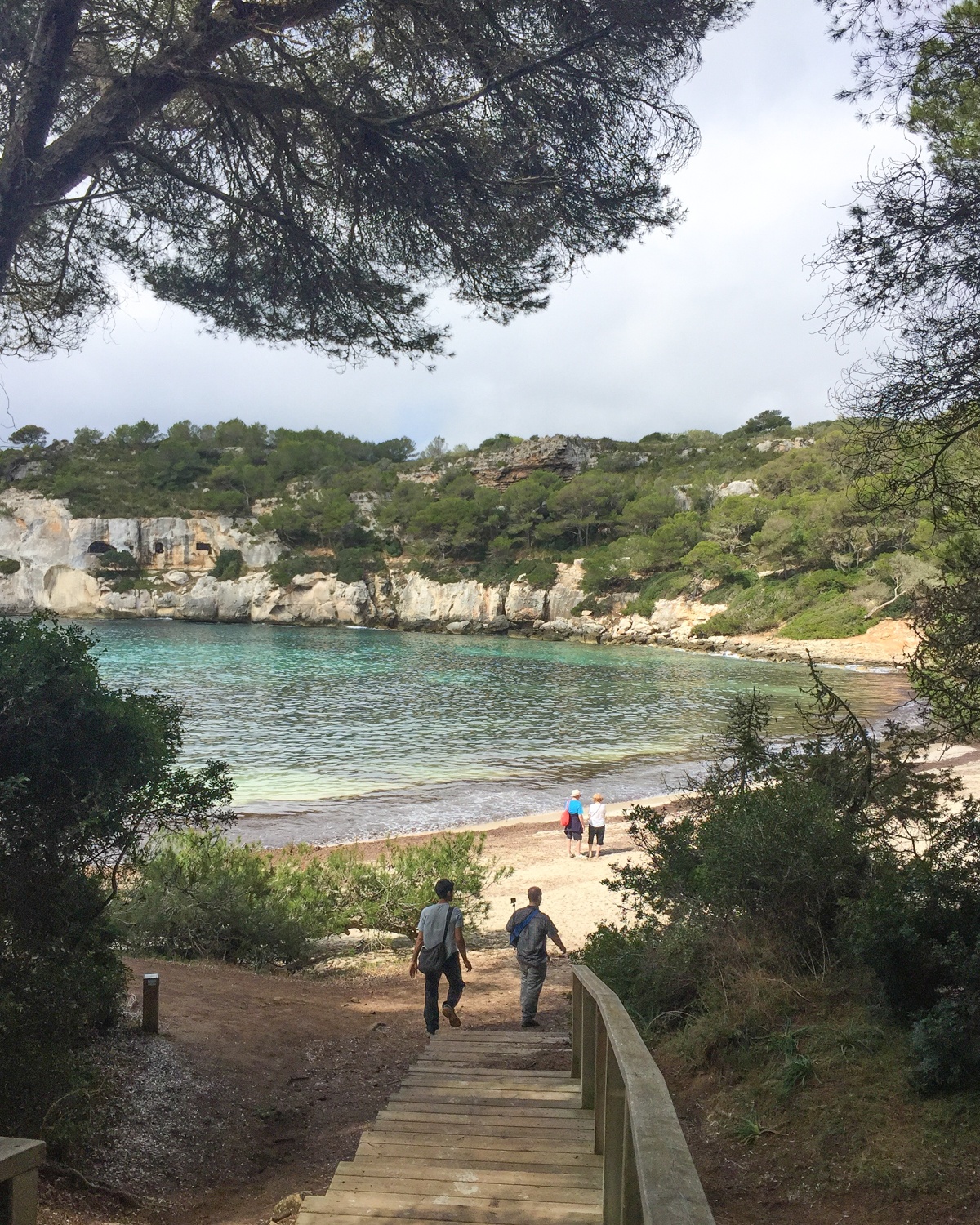 We reached a boardwalk which took us down to Macarella beach, with broad wooden steps leading down through the pine trees. The beach is a very popular one.