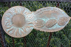 At stages around the walkway we came across sculptural metal plaques that had motifs about trees and poetic phrases such as where bees come to feed, flowers can make seeds and powered by sunlight, trees make their own food from water and air.